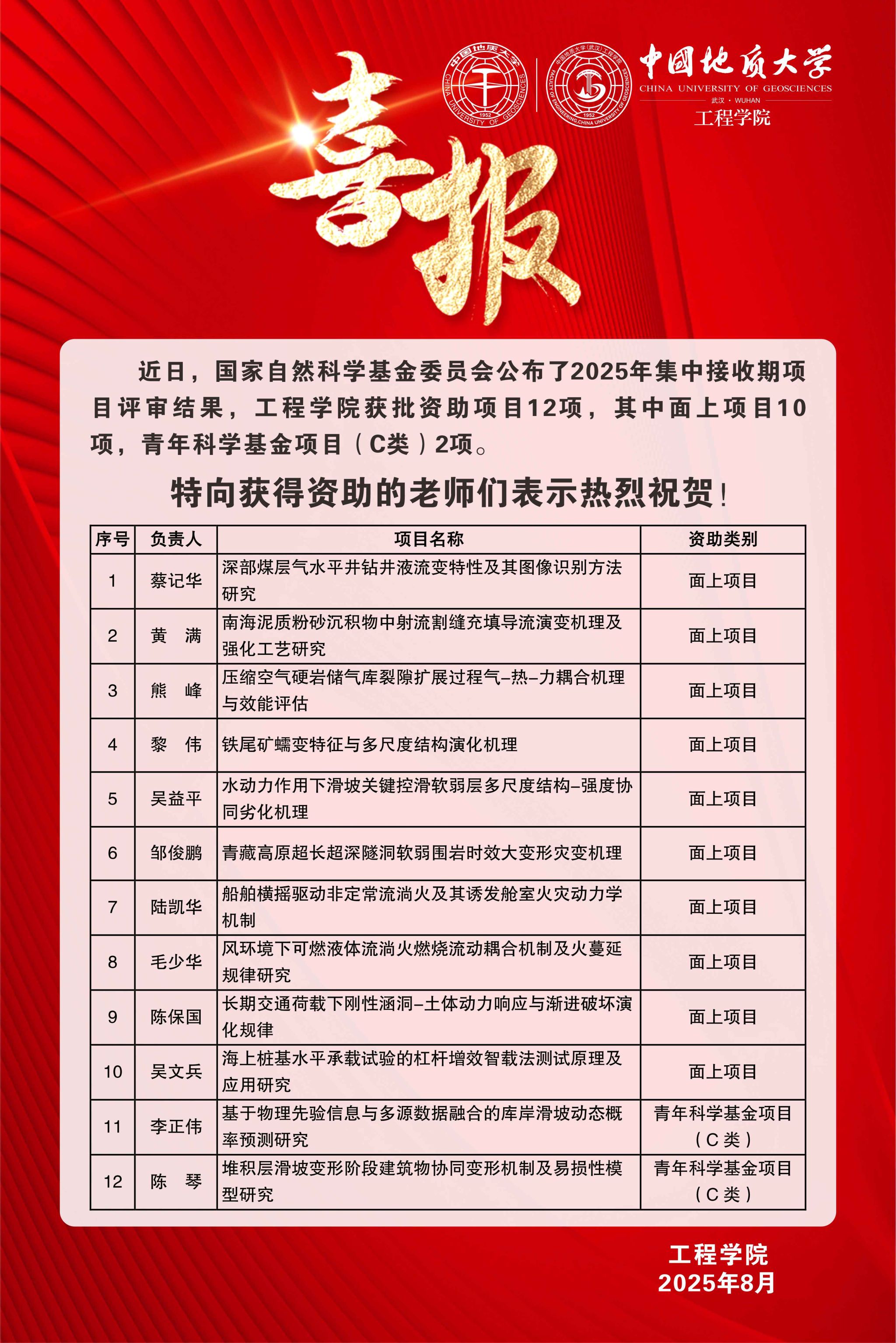 喜报:皇冠线路检测(中国)有限公司官网获批国家自然科学基金项目12项